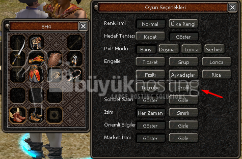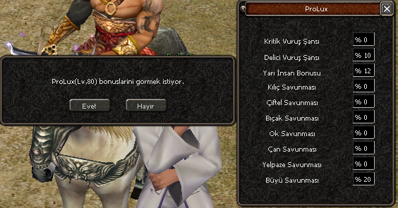 - Oyuncunun üzerine sağ tıklıyarak bonus (efsun)larını görebilmesini sağlar.