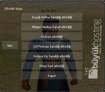 - Görevler sekmesinden gm hesap ile event yönetim panelini açabilirsiniz.
