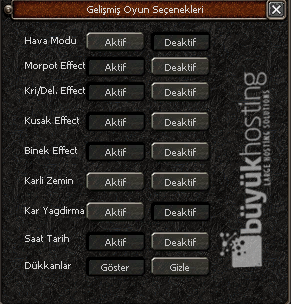 - Gelişmiş Oyun Seçenekleri Menüsü