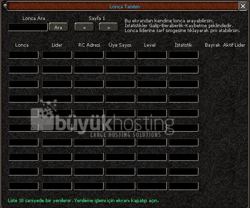 - Aktif Lonca Liderlerini görebilir savaş isteği gönderebilir veya PM atabilirsiniz.
