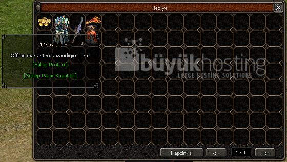 İtemlerin satılmazsa veya sattığın itemlerin ücretini Solda açılan hediye kutusundan alabilirsiniz.